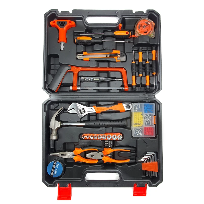 آچار آلن آچار بکس آچار فرانسه انبر دم باریک انبردست بست پیچ پیچ گوشتی چراغ قوه چسب چکش رولپلاک کاتر کیف ابزار متر